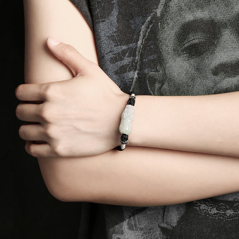 Buddha Stones Handmade Natural Jade PiXiu Luck Prosperity Braided String Bracelet