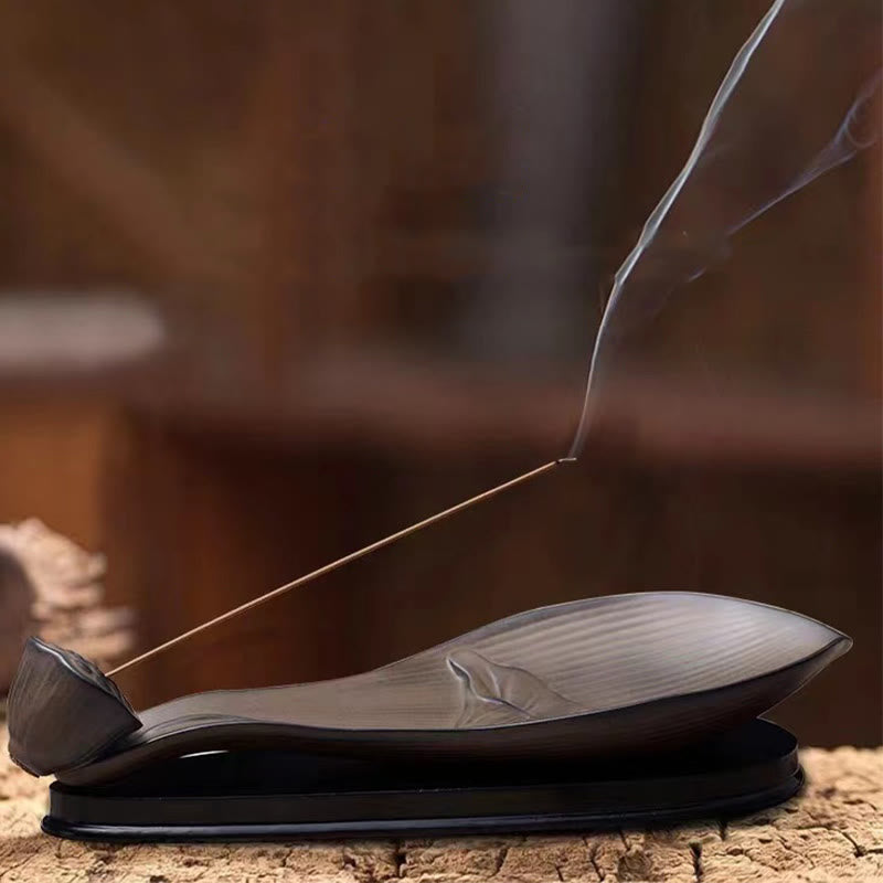 Buddha Stones Lotus Pod Zen Healing Brown Ceramic Stick Incense Burner Decoration