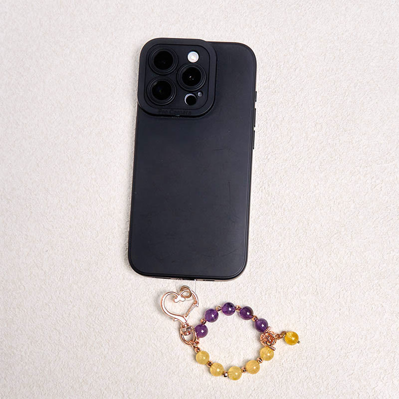 Buddha Stones Natural Amethyst Citrine Bead Healing Key Chain Hanging Decoration