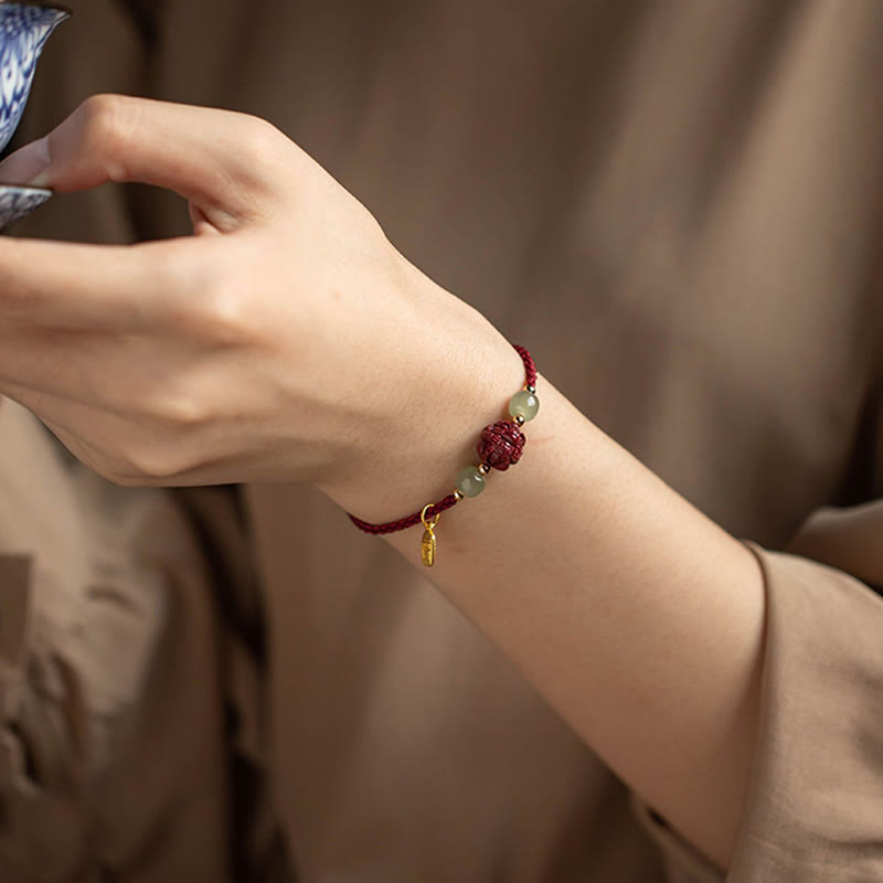 Buddha Stones Natural Cinnabar Chinese Zodiac Hetian Jade Fu Character Luck Rope Bracelet