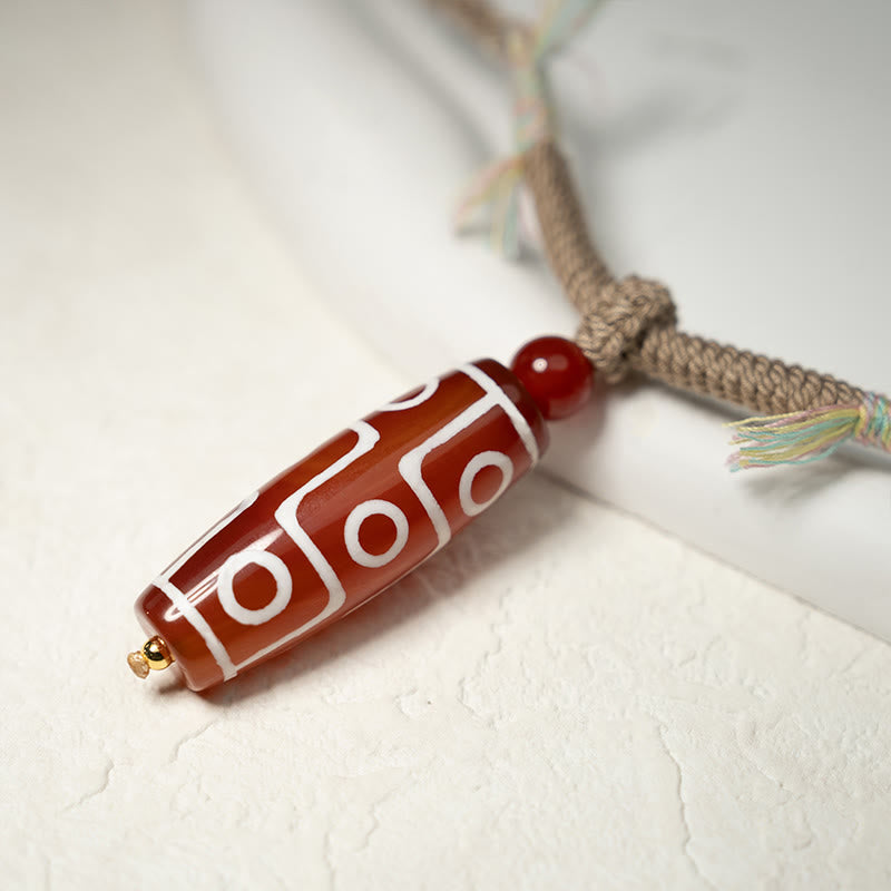 Buddha Stones Natural Red Agate Nine-eye Dzi Bead Power Rope Bracelet