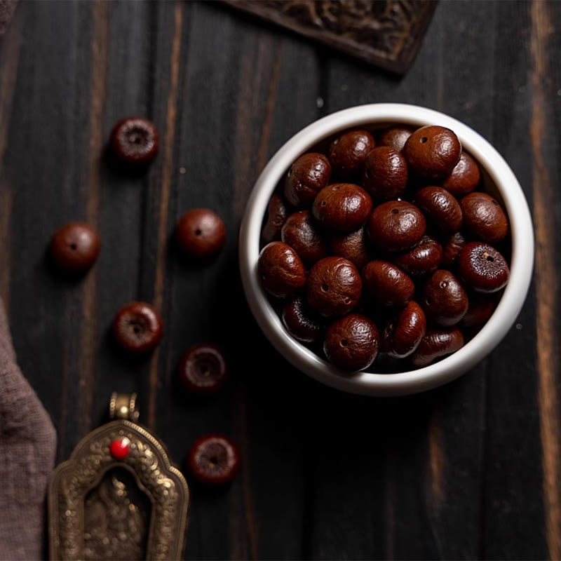 Bodhi in sanskrit translates to “enlightened” or "awakenened," therefore the bodhi seed means “enlightened seed” . As an “enlightened” seed, many practitioners wear the bodhi seeds during their meditation practices to ultimately reach enlightenment.Bodhi is also a term in Buddhism to reflect a Buddha’s understanding of the true nature of things.These dark-speckled seed beads have special meaning for all seekers of divine wisdom.