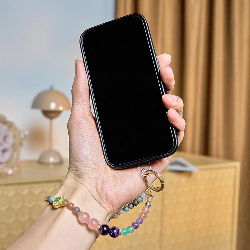 Buddha Stones Natural Tourmaline Strawberry Quartz Amethyst Positive Key Chain Phone Hanging Decoration