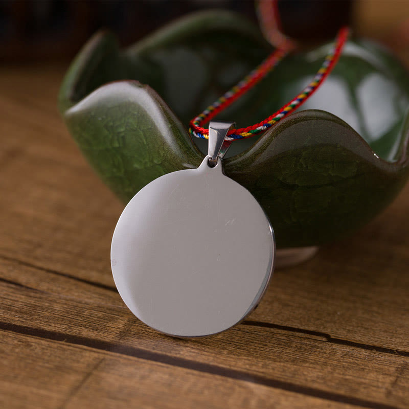 Buddha Stones Om Hum Sanskrit Titanium Steel Luck Colored Rope Necklace Pendant