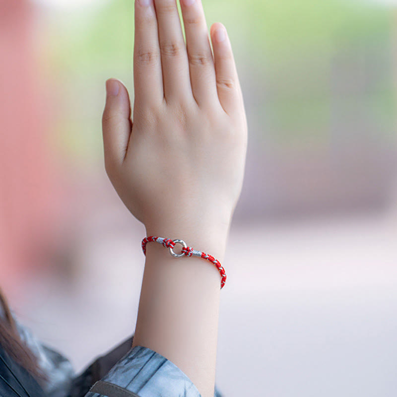 Buddha Stones 925 Sterling Silver Peace Buckle Luck String Bracelet