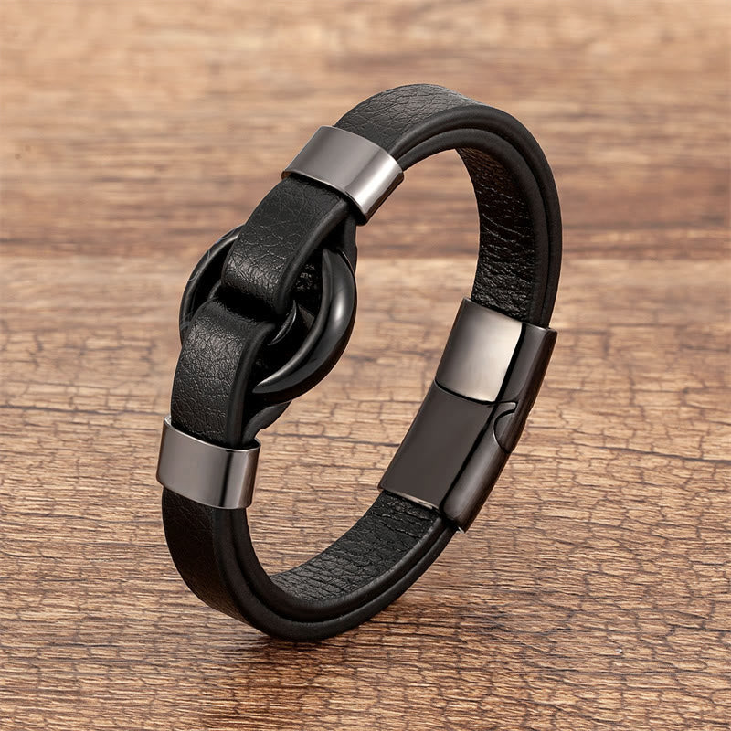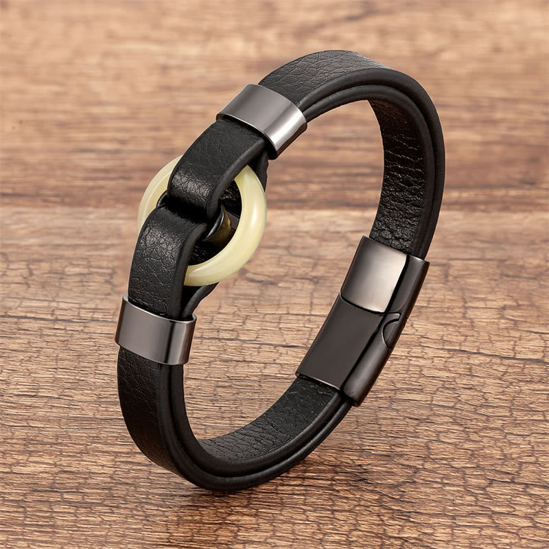Buddha Stones Round Green Aventurine Black Onyx Hematite Agate Rose Quartz Stone Balance Leather Magnetic Buckle Bracelet
