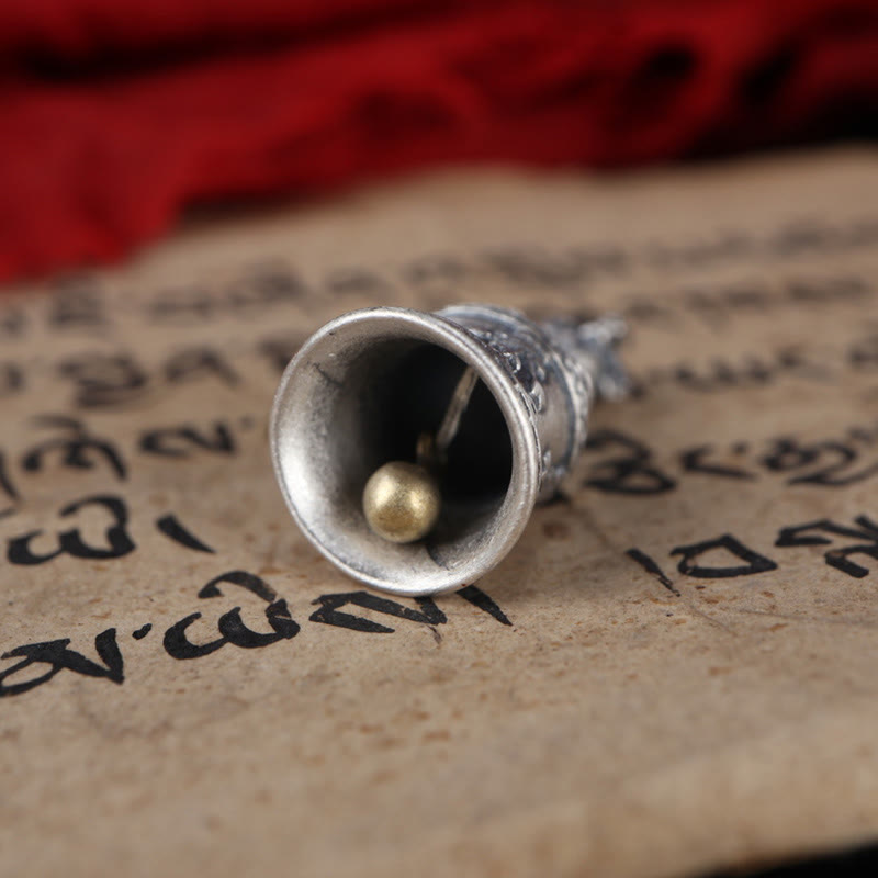 Buddha Stones Tibet 925 Sterling Silver Om Mani Padme Hum Dorje Bell Vajra Engraved Enlightenment Pendant Hanging Decoration