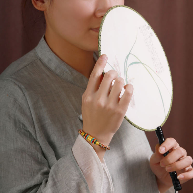 The eight-strand braid is evolved from the four-strand braid, the threads are intertwined, mutual generation and restraint, and samsara rotation, symbolizing life's love and hatred, joy, anger, sorrow, and joy.