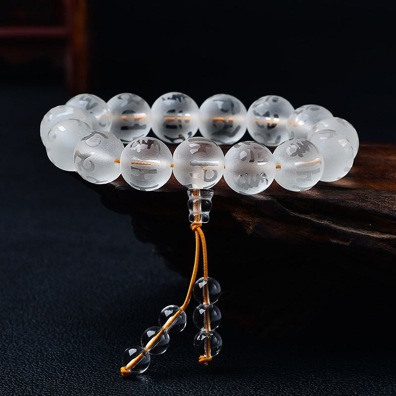 Buddha Stones Tibet White Crystal Black Onyx Om Mani Padme Hum Meditation Bracelet Bracelet BS 2