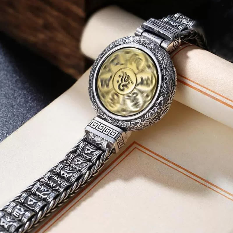 Buddha Stones Tibetan Copper Buckle Om Mani Padme Hum Turntable Rotatable Peace Metal Bracelet