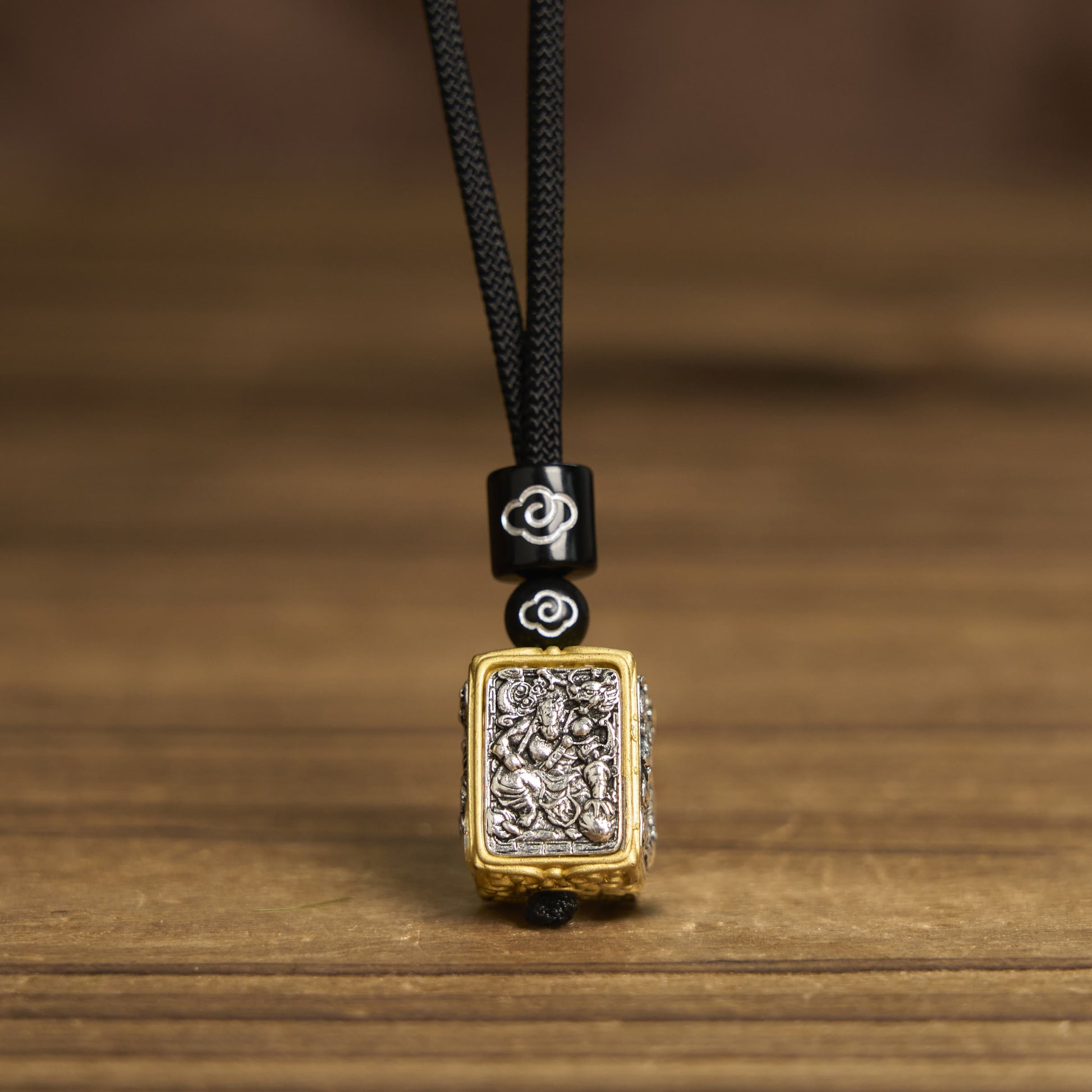 Buddha Stones Tibetan Zakiram Goddess Of Wealth Protection Rope Square Necklace Pendant