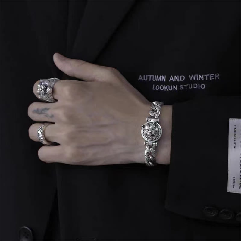Buddha Stones Tiger Tang Dynasty Flower Design Engraved Luck Energy Bracelet