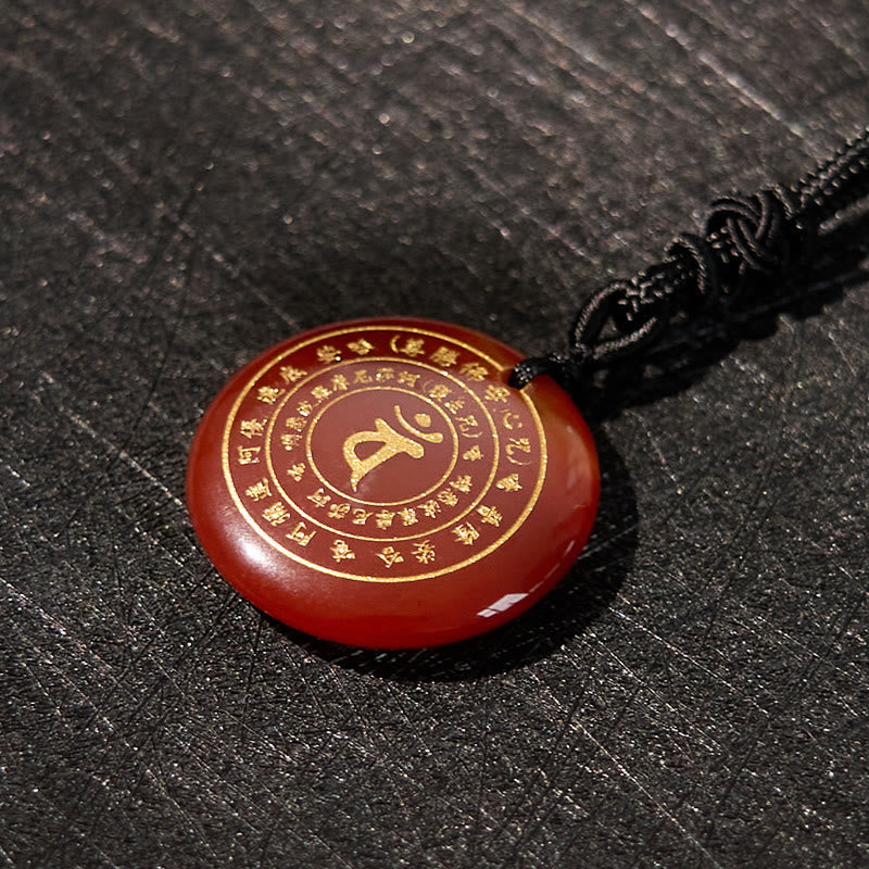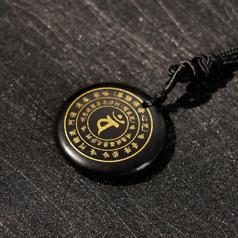 Buddha Stones Vairocana Tathagata Sanskrit Mantra Various Crystal Black Obsidian Green Aventurine Strength Necklace Pendant