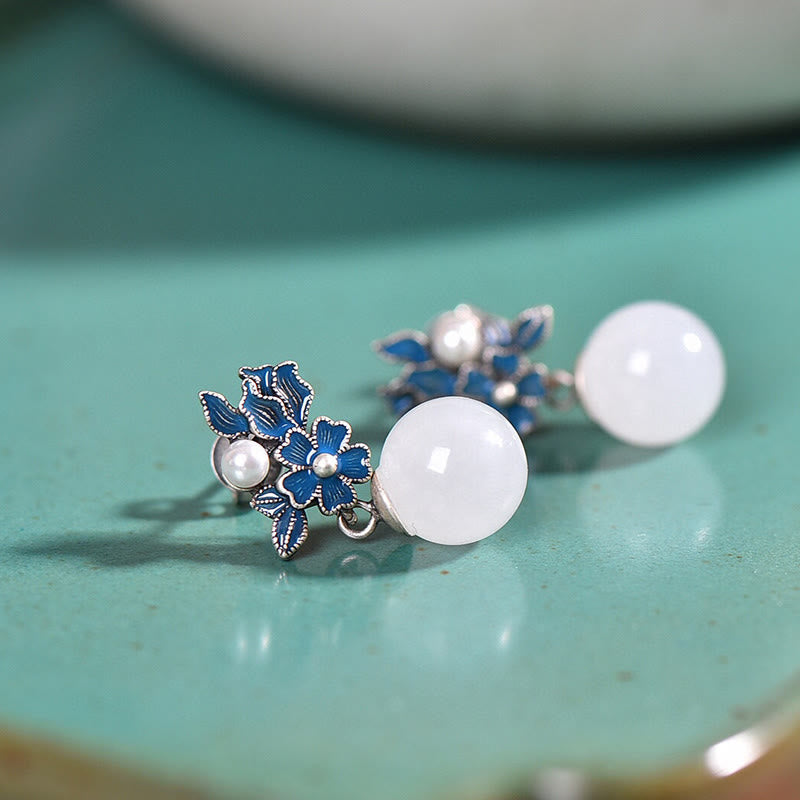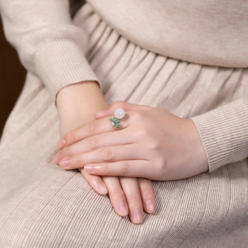 Buddha Stones White Jade 925 Sterling Silver Pearl Flower Blessing Necklace Pendant Ring Earrings