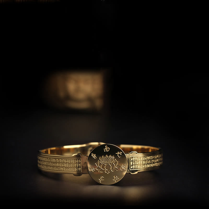 Experience balance and harmony with this handcrafted Titanium Steel bangle. Imprinted with Yin Yang for equilibrium, Lotus for perseverance, and the Tibetan mantra 'Om Mani Padme Hum' for spiritual connection. Each symbol promises positivity and good fortune. A unique and meaningful adornment for every wearer. 💕