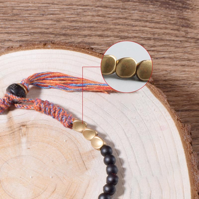 Buddha Stones Handmade Tibetan Black Onyx Tassel Bracelet