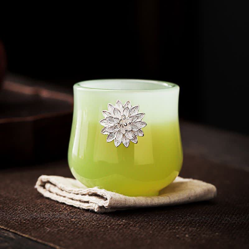 Buddha Stones Lotus Dragon Phoenix Flower Ceramic Teacup Tea Cups