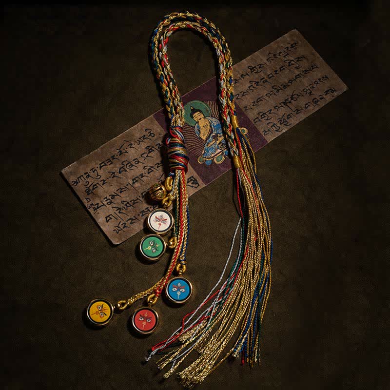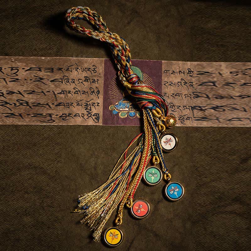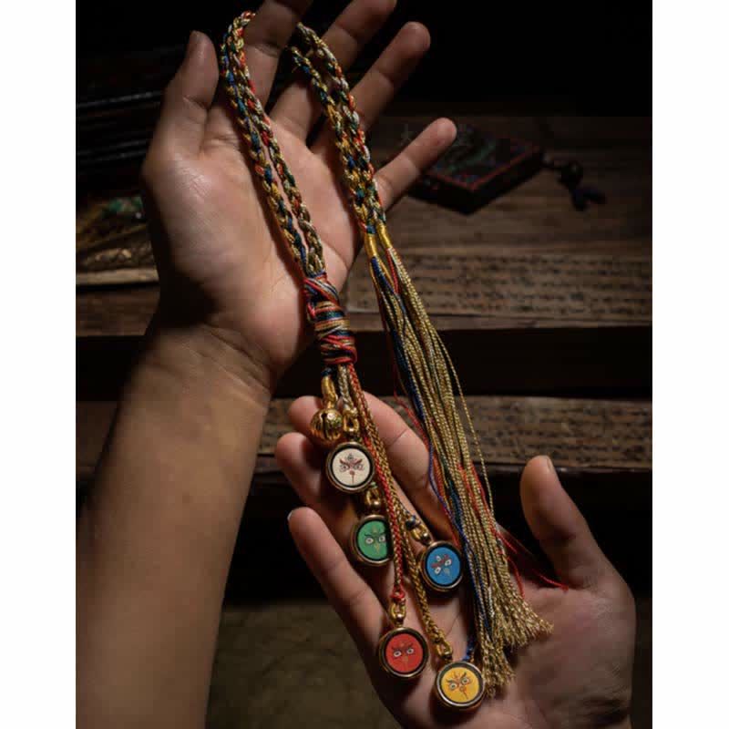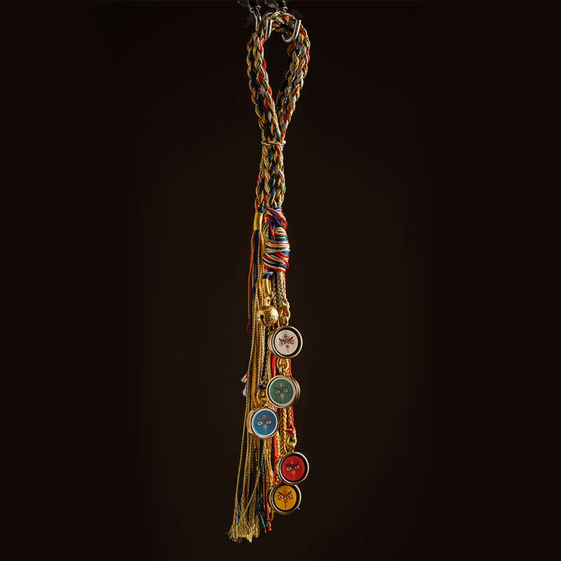 Buddha Stones Tibet Handmade Five God Of Wealth Thangka Protection Wall Car Hanging Decoration