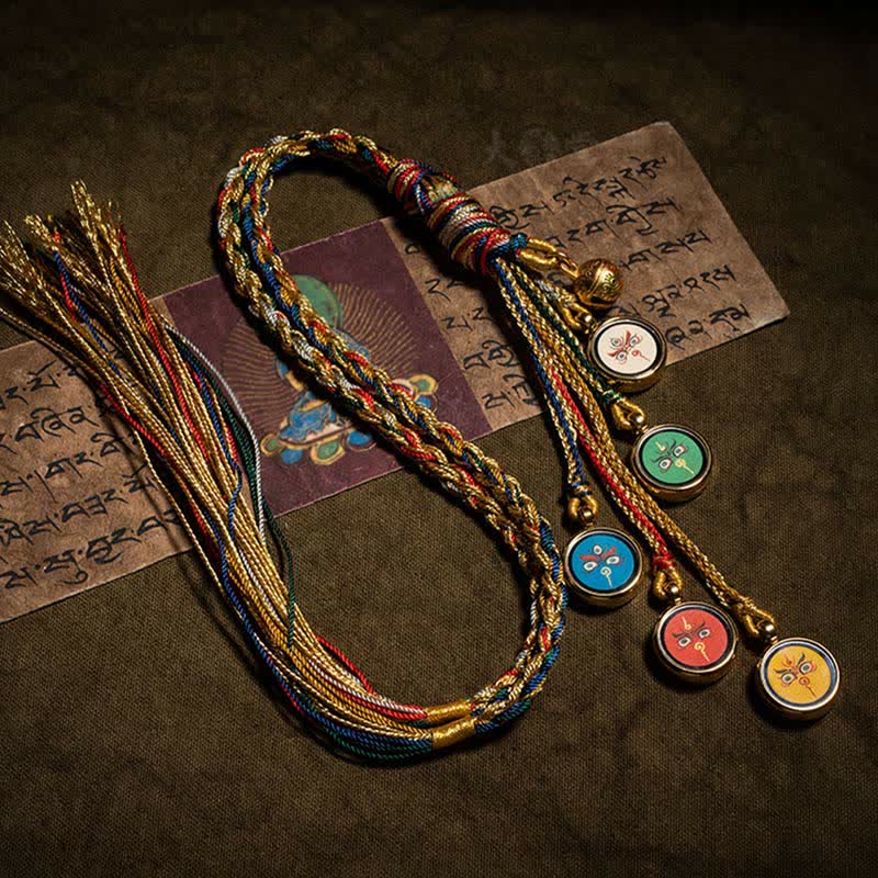 In lineages of Tibetan Vajrayana Buddhism, tying a cord or string around the wrist is common during ceremonies. Traditionally, the Lama blesses the string and then ties a knot and imbues it with a mantra. Similar to other traditions, it's said that these red cords bring luck and offer protection. In ancient Chinese legend, the Red Thread of Fate is - invisible and ties all those whose lives will intertwine together. It is governed by the Chinese God of marriage, Yue Lao, as it's primarily associated with the link between two people destined to be married. Throughout history and across philosophies, the red string has been worn for protection, faith, good luck, strength, and connection.