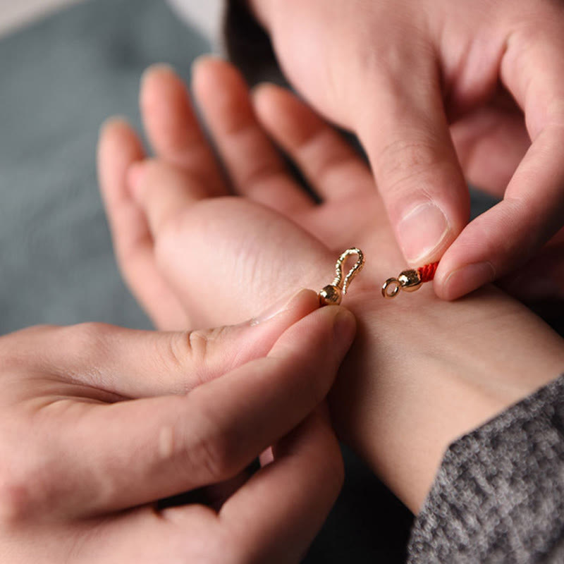 In lineages of Tibetan Vajrayana Buddhism, tying a cord or string around the wrist is common during ceremonies. Traditionally, the Lama blesses the string and then ties a knot and imbues it with a mantra. Similar to other traditions, it's said that these red cords bring luck and offer protection. In ancient Chinese legend, the Red Thread of Fate is - invisible and ties all those whose lives will intertwine together. It is governed by the Chinese God of marriage, Yue Lao, as it's primarily associated with the link between two people destined to be married. Throughout history and across philosophies, the red string has been worn for protection, faith, good luck, strength, and connection.