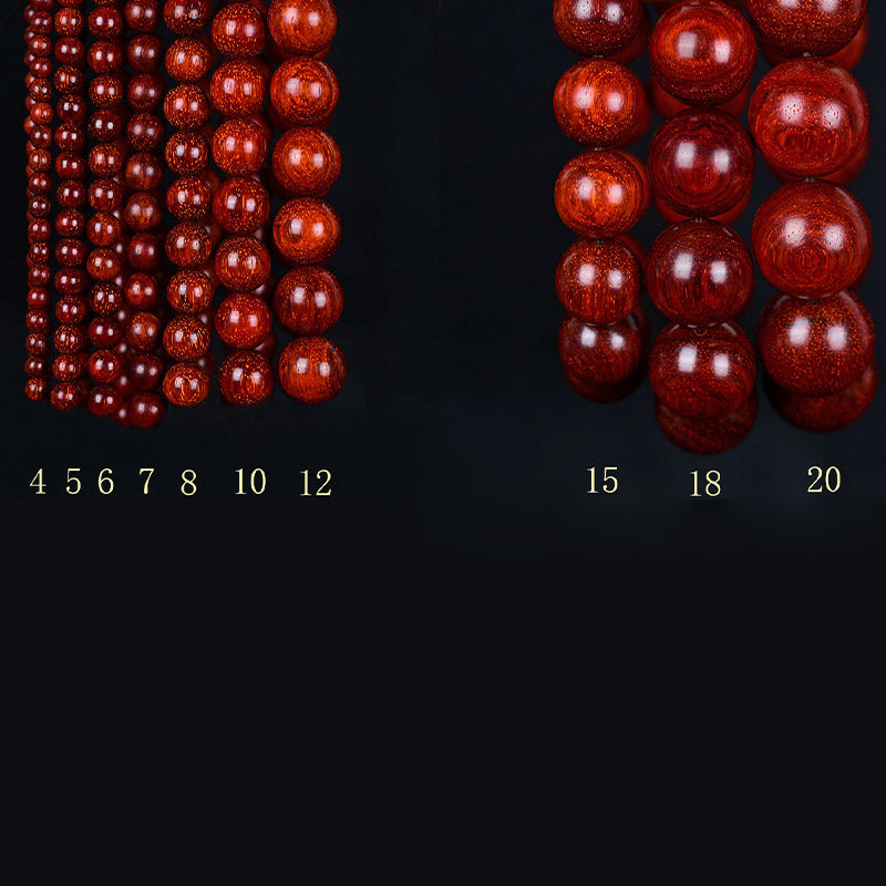Small leaf red sandalwood has the effects of avoiding evil and protecting peace, eliminating disasters and relieving evil, eliminating evil and gathering wealth, changing Feng Shui, providing the gods of Buddha's spiritual cultivation, and curing diseases and relieving evil. In the "Compendium of Materia Medica", it is described that Pterocarpus striata has calming heart, soothing nerves, relaxing muscles and blood, anti-inflammatory and pain-relieving effects. Wearing small leaf red sandalwood jewelry can have incredible magical powers and inductions, such as enhancing immunity, preventing aging, stabilizing heart rate, improving insomnia and other medicinal effects.