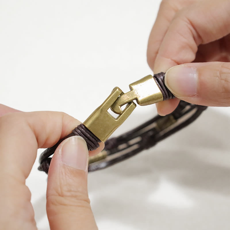 Buddha Stones Vintage Leather Wrist Band Brown Rope Layered Bracelet Bangle