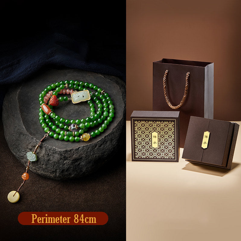 Buddha Stones 108 Mala Beads Cyan Jade Red Agate Laughing Buddha Luck Bracelet
