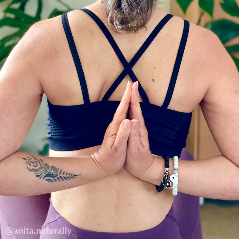 Buddha Stones 2Pcs Black Onyx White Turquoise Bead Yin Yang Protection Couple Bracelet