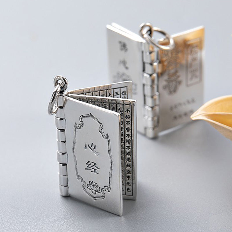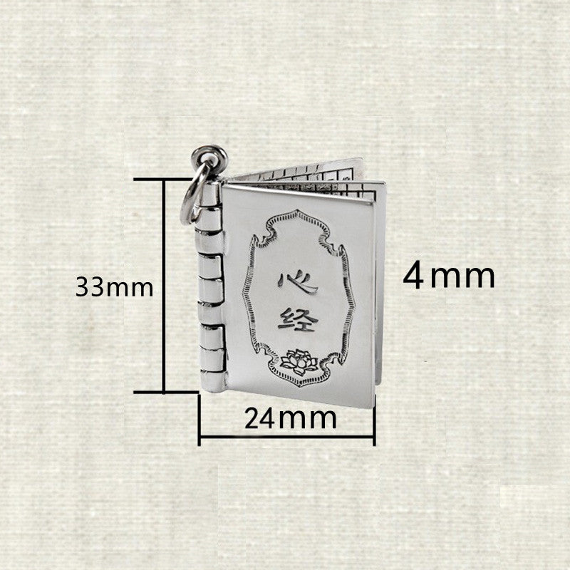 Buddha Stones 990 Sterling Silver Heart Sutra Great Compassion Shurangama Mantra Lotus Vajra Peace Necklace Pendant
