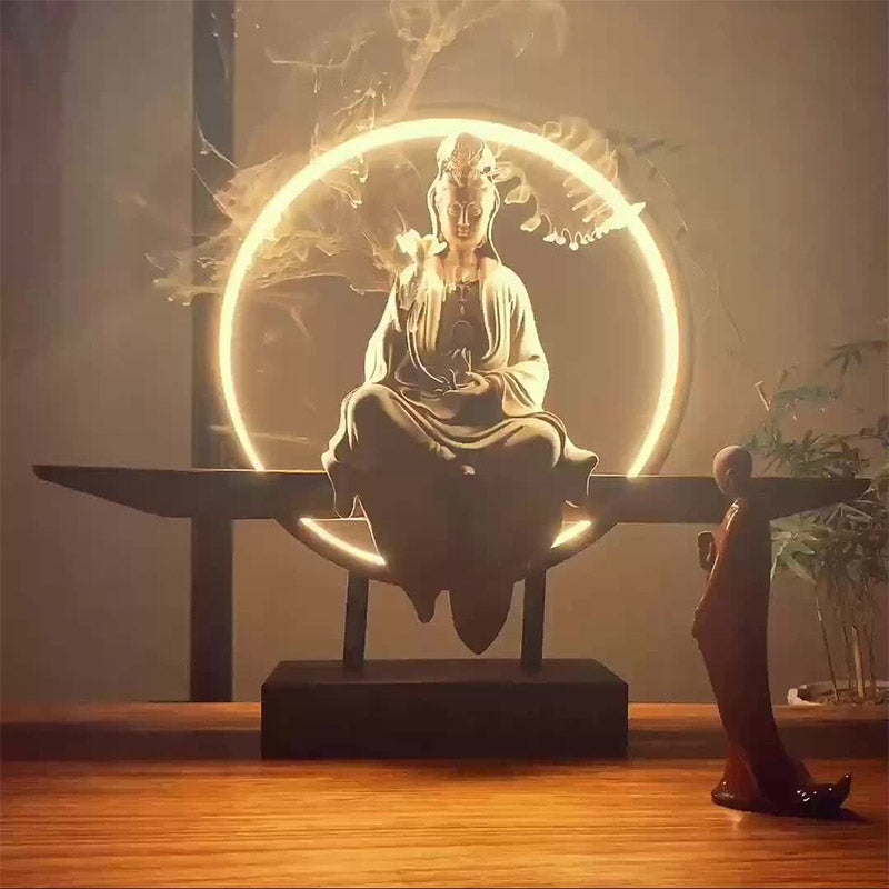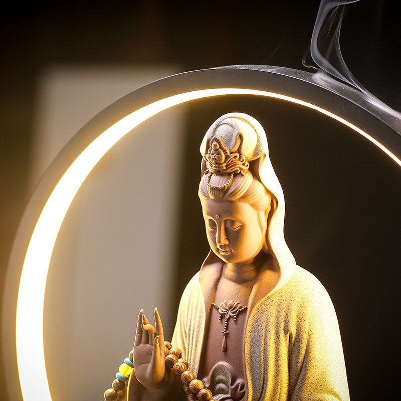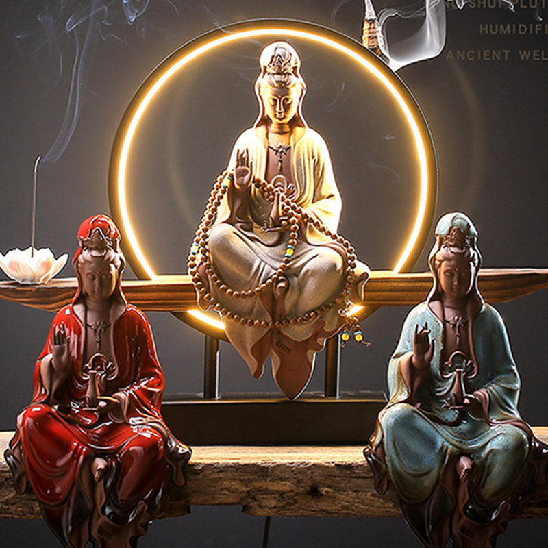 Buddha Stones Buddha Avalokitesvara Ceramic Lotus Relaxation Incense Burner Decoration