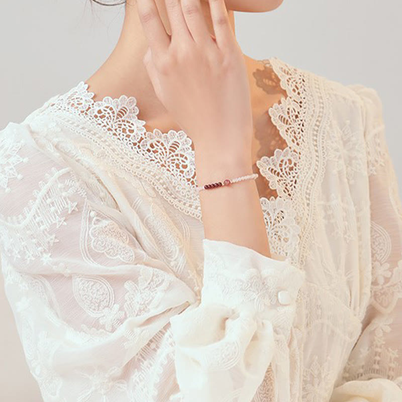 Rose Quartz Healing Energy Bracelet features ultra-thin beads of Rose Quartz, Garnet, and a larger Strawberry Quartz bead. Rose Quartz is known for its association with love and harmony, while Garnet promotes vitality and passion. The Strawberry Quartz bead adds a touch of warmth and joy. This bracelet is designed to promote healing, emotional balance, and positive energy flow.đ