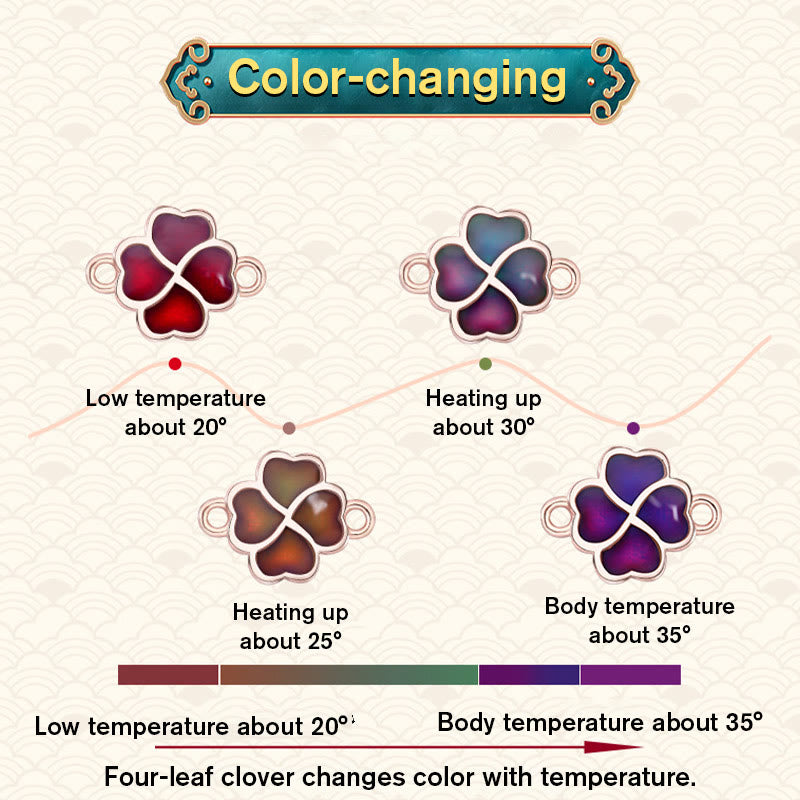 Buddha Stones 925 Sterling Silver Color-changing Four Leaf Clover Luck Protection Red String Bracelet