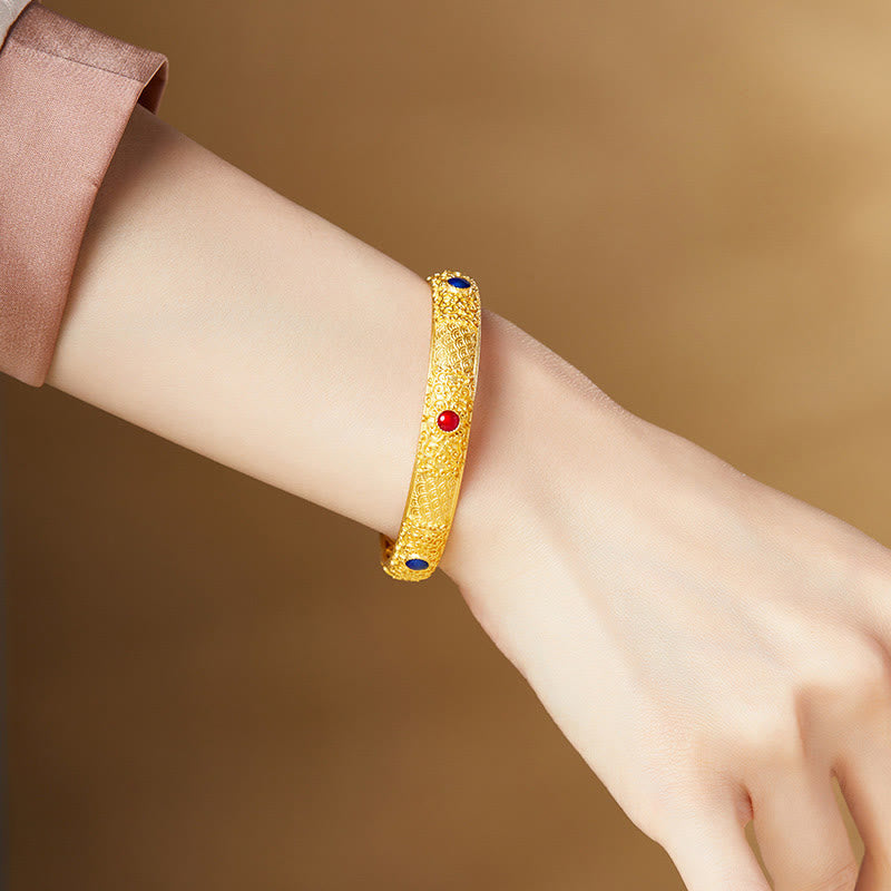 Buddha Stones 925 Sterling Silver Golden Auspicious Clouds Hollow Design Protection Bracelet Bangle 2.20 IN (56 MM)