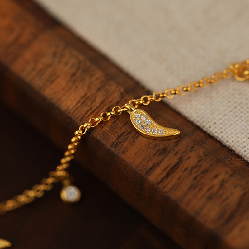 Buddha Stones 925 Sterling Silver Zircon Little Pepper Charm Protection Anklet