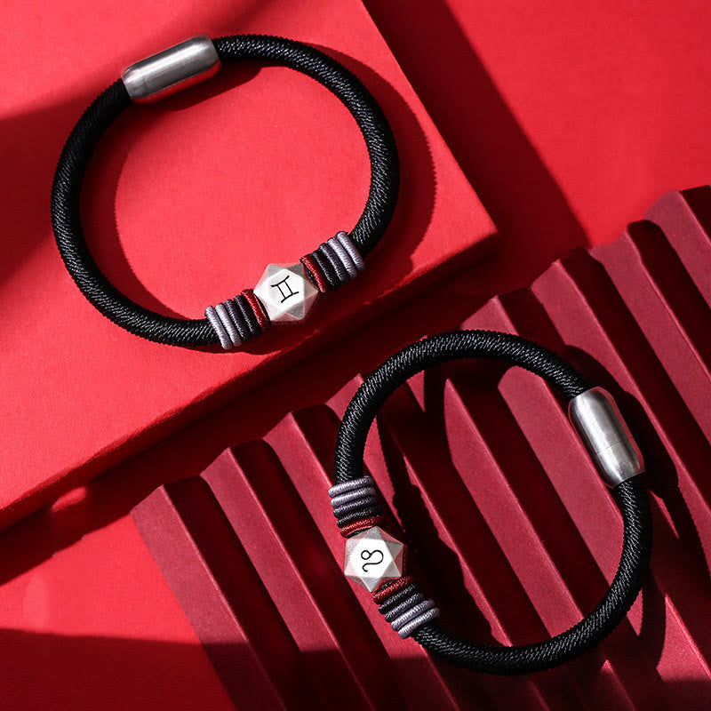 Buddha Stones 999 Sterling Silver 12 Constellations of the Zodiac Blessing Handmade String Bracelet