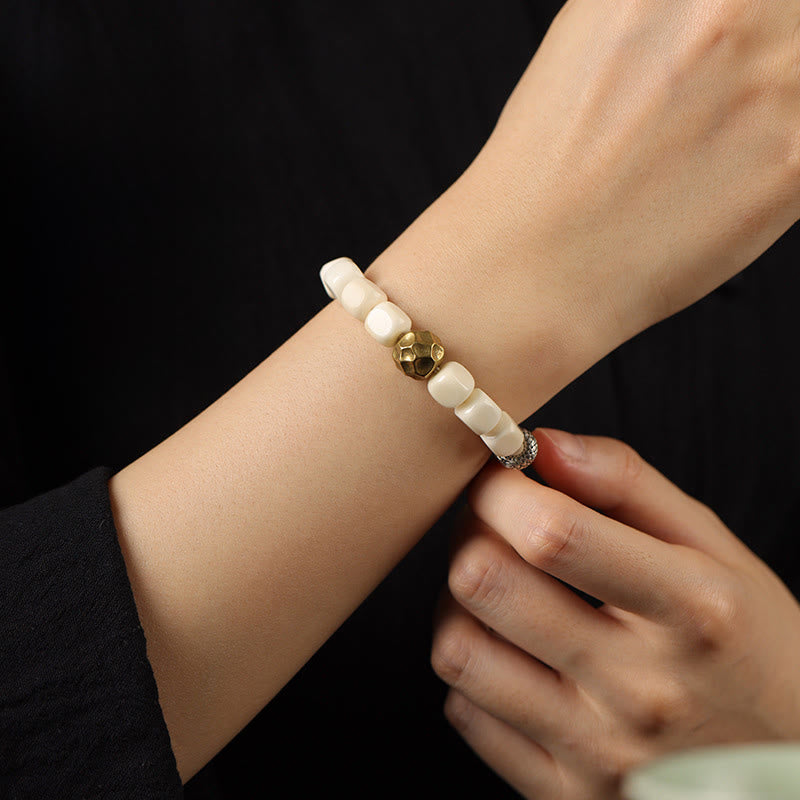 Buddha Stones Bodhi Seed Hammered Copper Brass Calm Bracelet