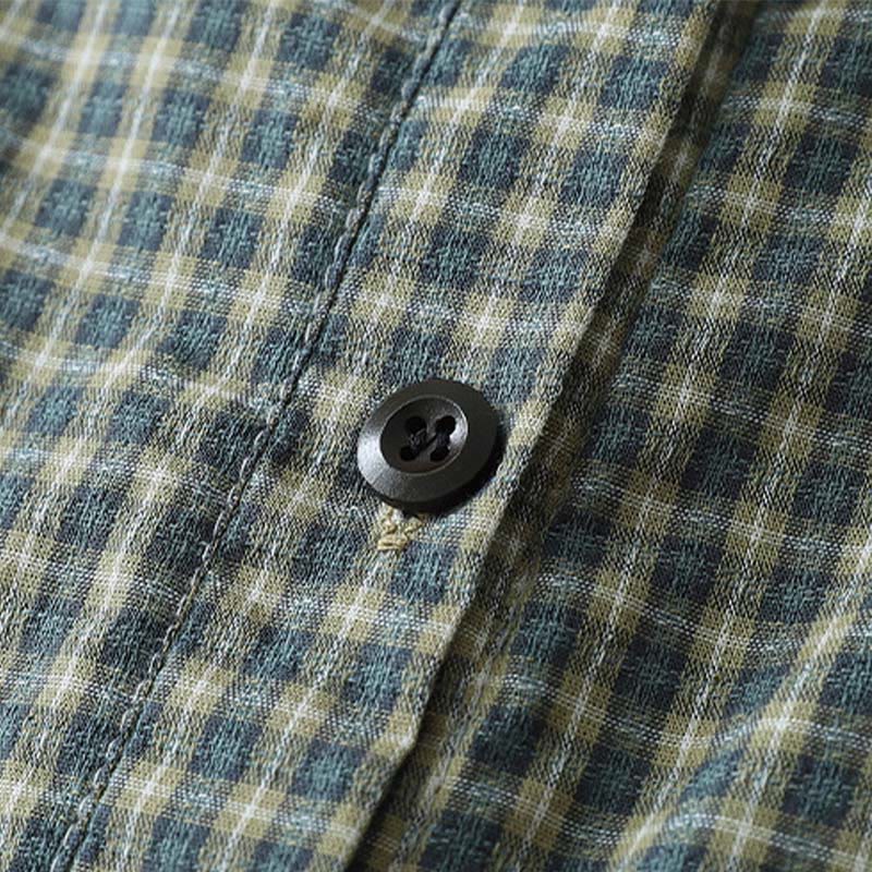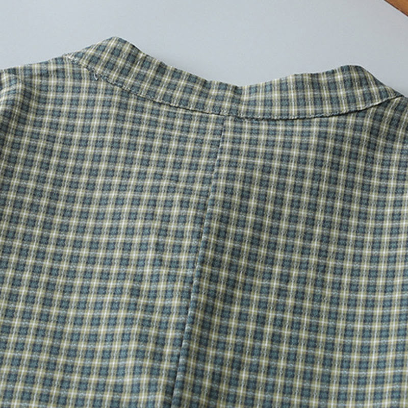Buddha Stones Casual Plaid Buttons Lantern Long Sleeve Cotton Midi Dress