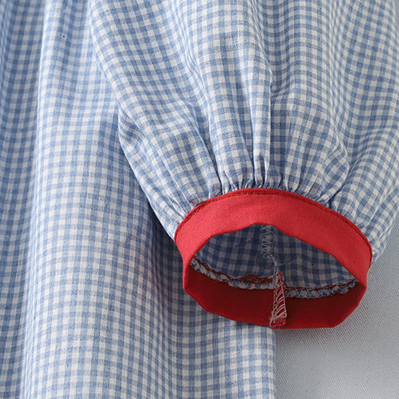 Buddha Stones Casual Plaid Pattern Long Lantern Sleeve Cotton Linen Midi Dress With Pockets