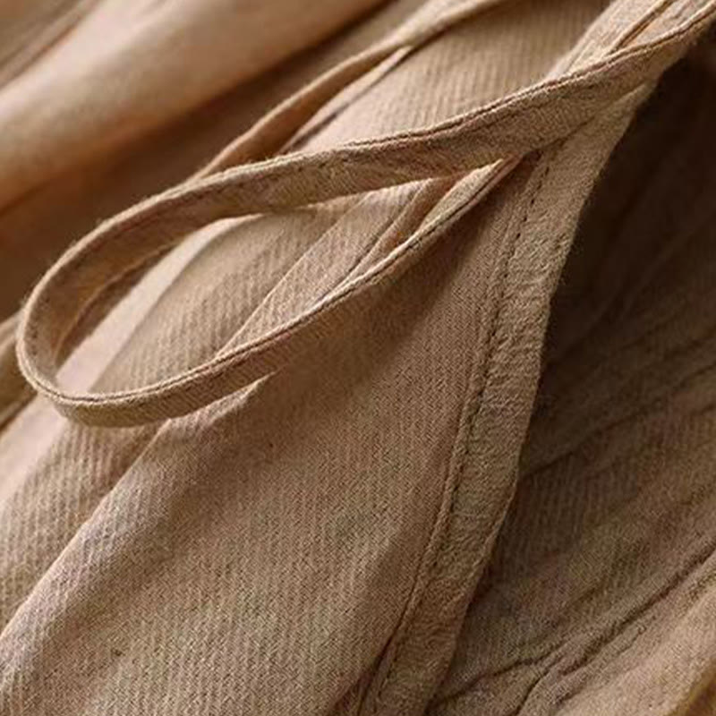 Buddha Stones Casual Plain Handmade Drawstring Waist Midi Dress Acrylic Sleeveless Dress With Pockets