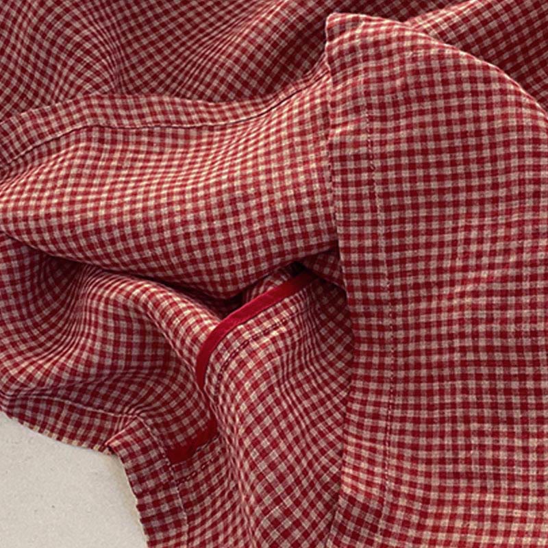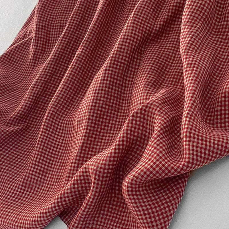 Buddha Stones Casual Plain Handmade Plaid Midi Dress Cotton Sleeveless Dress With Pockets