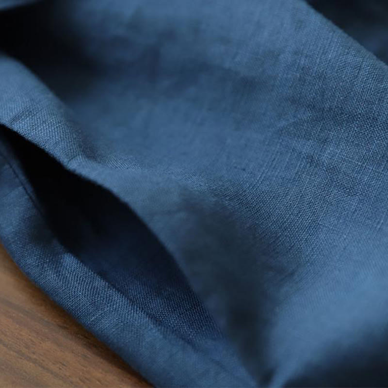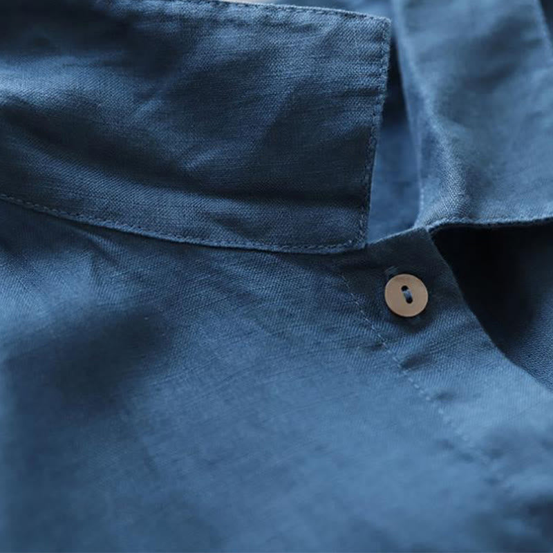 Buddha Stones Casual Plain Lace-up Stand Collar Linen Midi Dress With Pockets