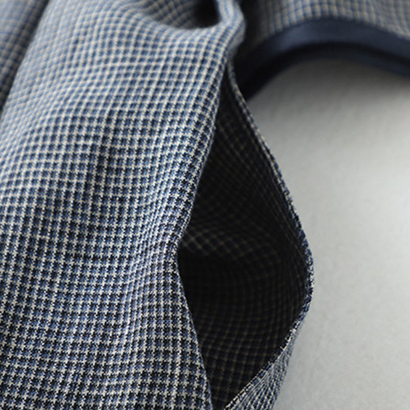 Buddha Stones Commute MidnightBlue Lace-Up Half Sleeve Design Cotton Linen Midi Dress With Pockets