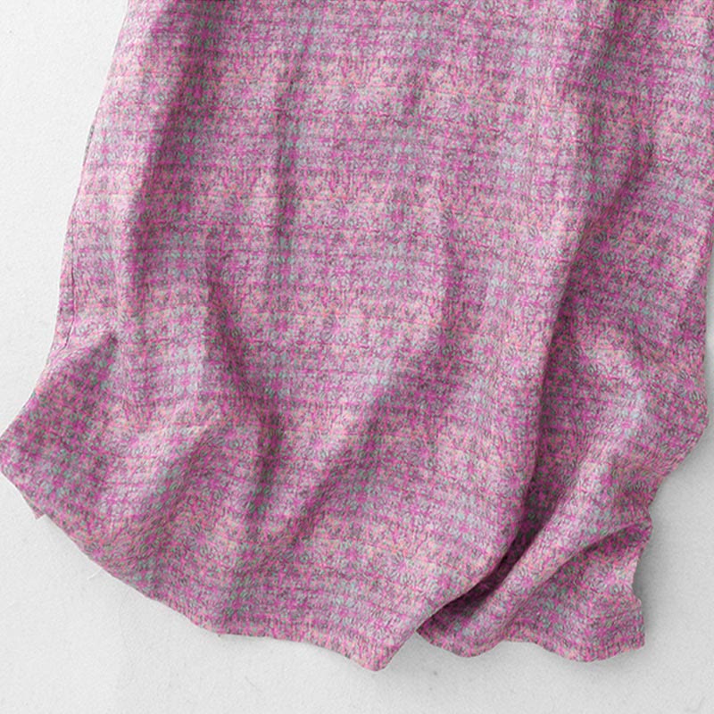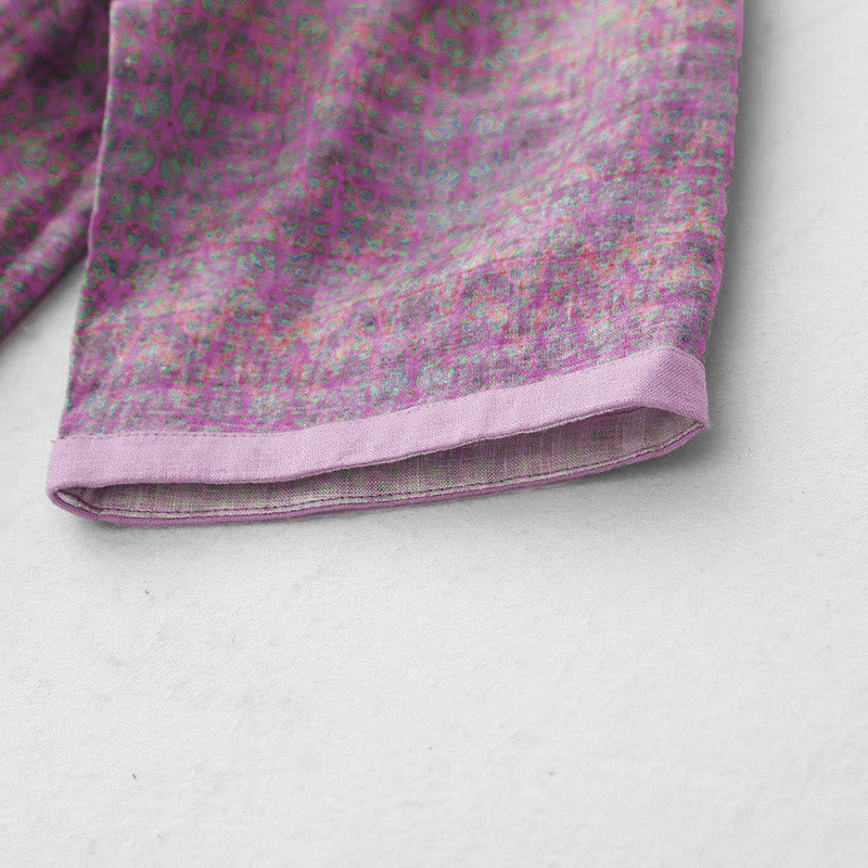 Buddha Stones Commute Printing Floral Pattern Short Sleeve Cotton Linen Midi Dress With Pockets