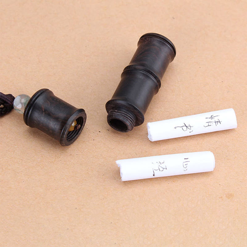 Buddha Stones Ebony Wood Bamboo Pattern Ghau Prayer Box Peace Necklace Pendant
