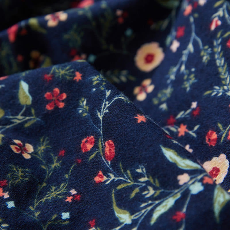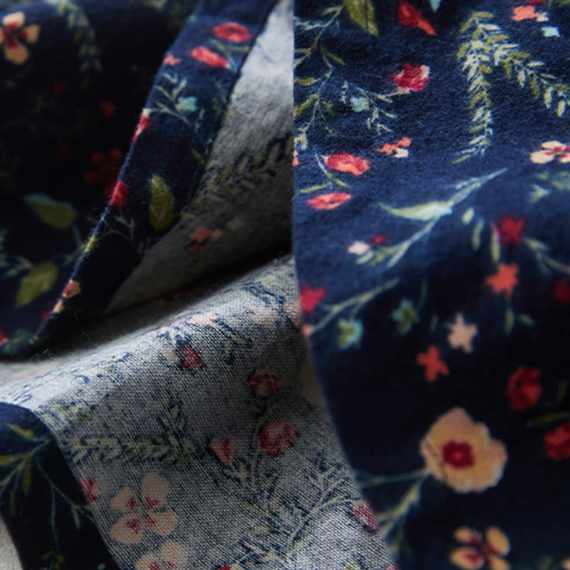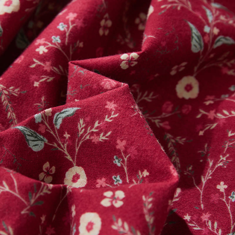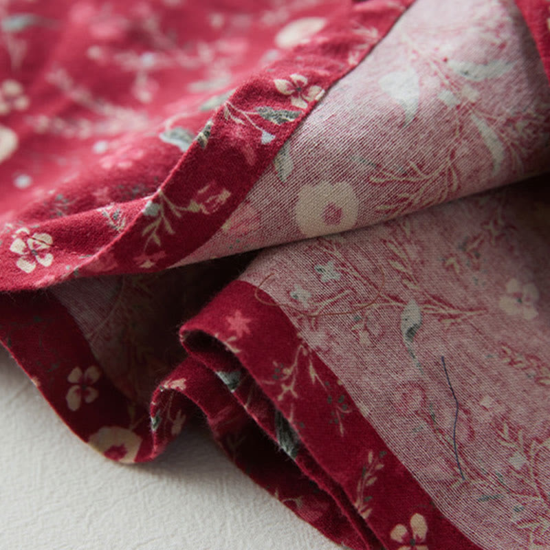 Buddha Stones Ethnic Printing Floral Lace-Up Design Long Sleeve Cotton Linen Midi Dress