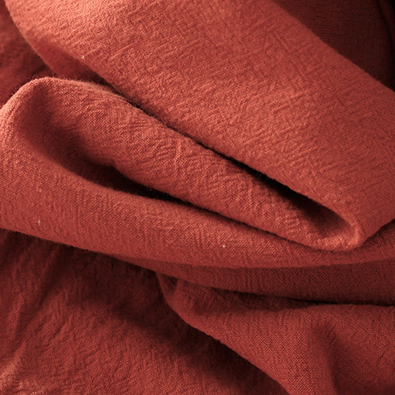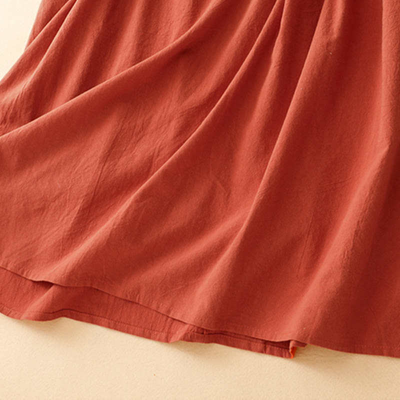 Buddha Stones Fall Lapel Buttons Lace-Up Design Cotton Long Sleeve Midi Dress With Pockets