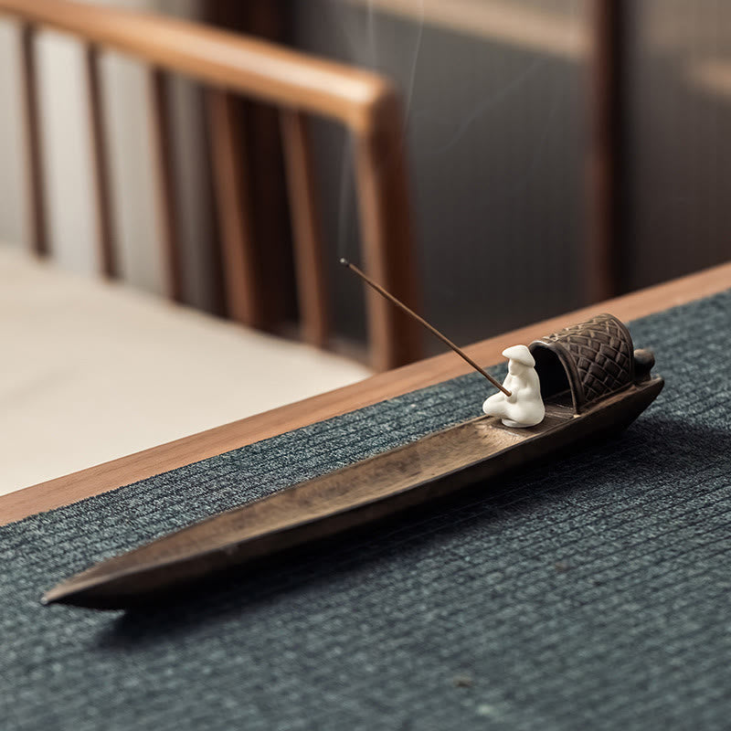 Buddha Stones Fisherman Zen Healing Brown Ceramic Stick Incense Burner Decoration