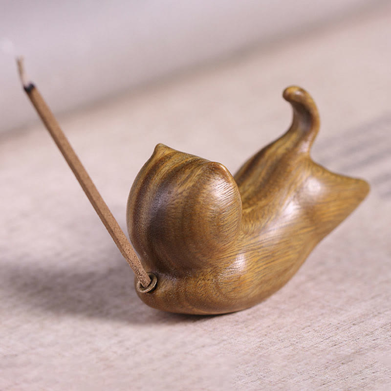 Buddha Stones Green Sandalwood Cute Cat Pattern Soothing Stick Incense Burner Decoration