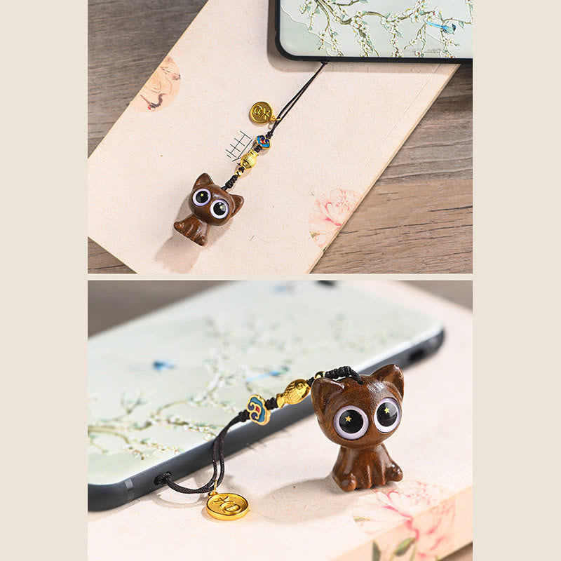 Buddha Stones Green Sandalwood Lucky Cat Koi Fish Cure Key Chain Phone Hanging Decoration