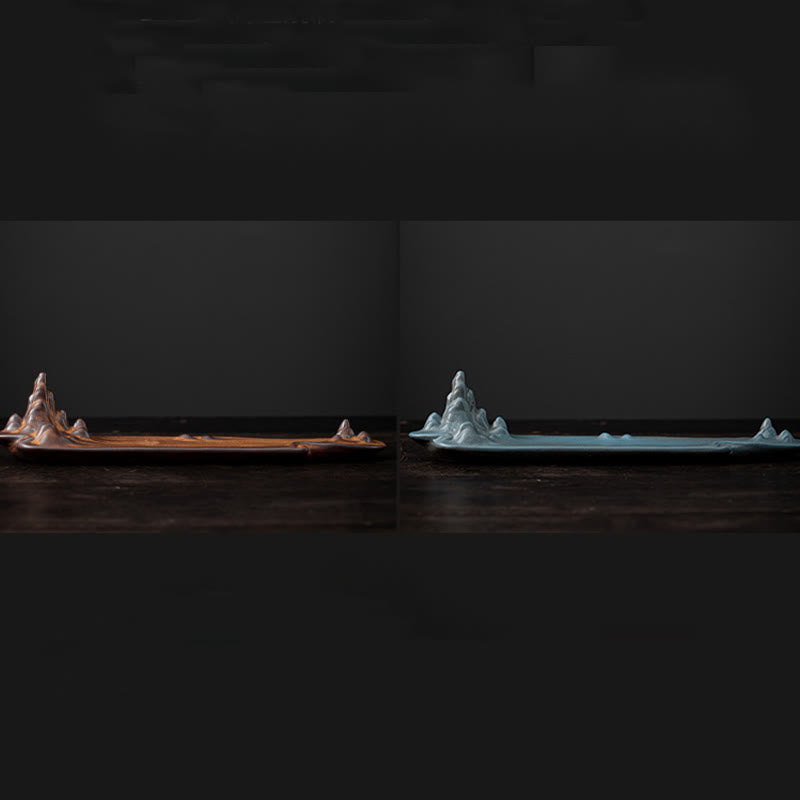 Buddha Stones Mountains Boat Design Spiritual Healing Ceramic Stick Incense Burner Decoration